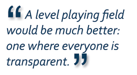 A level playing field would be much better: one where everyone is transparent, everyone plays by the rules, everyone can be trusted to represent their own stakeholder interests.