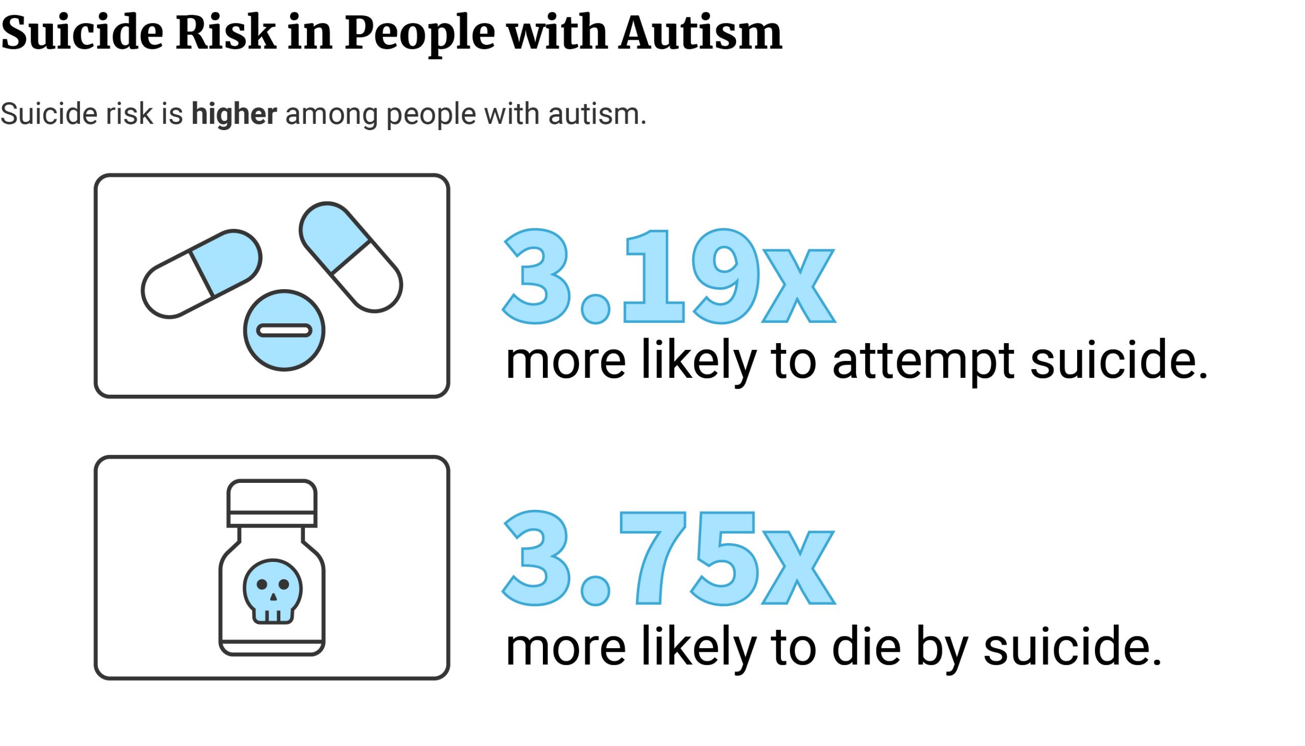 - Blanchard, A., Chihuri, S., DiGuiseppi, C. G., & Li, G. (2021). Risk of Self-harm in Children and Adults With Autism Spectrum Disorder. JAMA Network Open, 4(10), e2130272. [4]