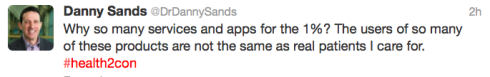 For example, during the Health 2.0 conference in San Francisco last fall, Dr. Danny Sands (founder and former president of the Society for Participatory Medicine) tweeted this: